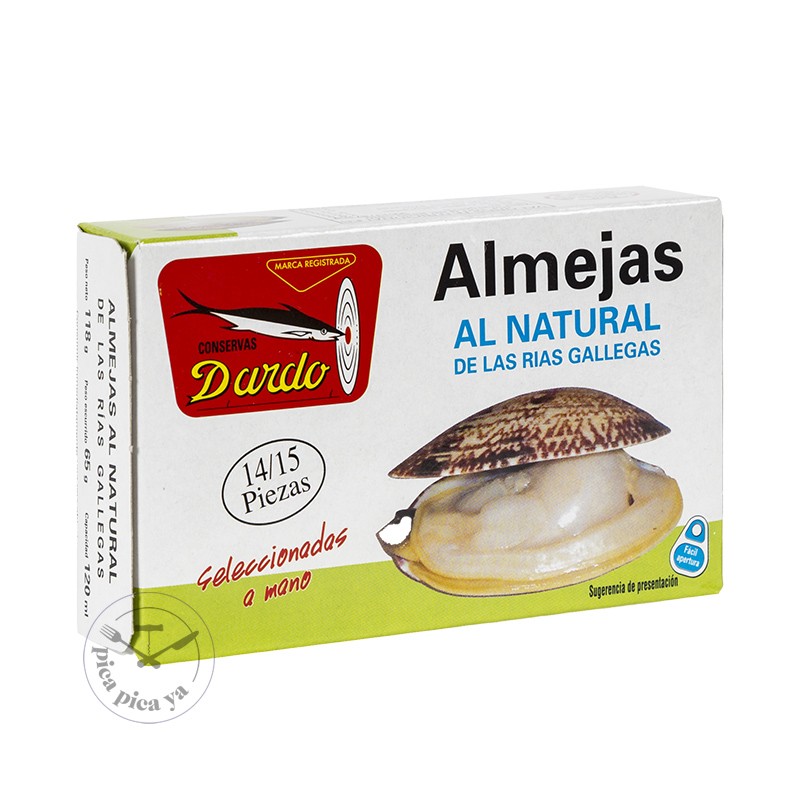 Lata de de almejas al natural procedentes de las Rías Gallegas y seleccionados a mano.